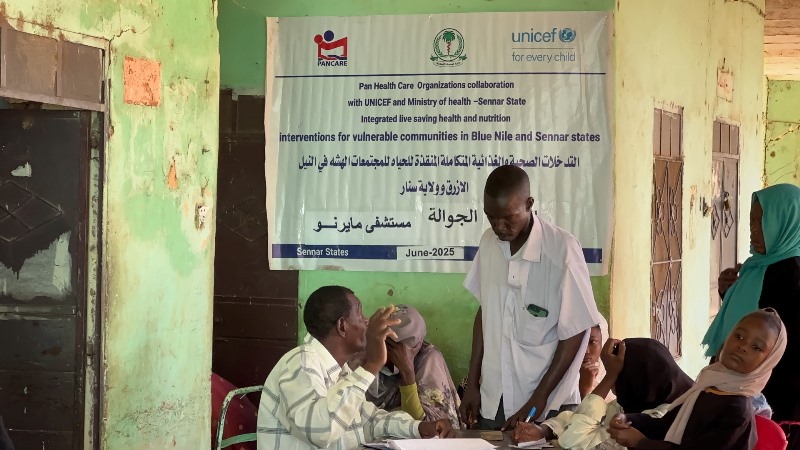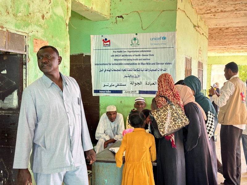 Pan Care Health Organization (PANCARE), with support from UNICEF, has launched fully integrated mobile clinics under the “Integrated Life-Saving Health and Nutrition Interventions for Vulnerable Communities” project in Blue Nile and Sennar States. These clinics offer free medical services in Um Showka, Sennar State.